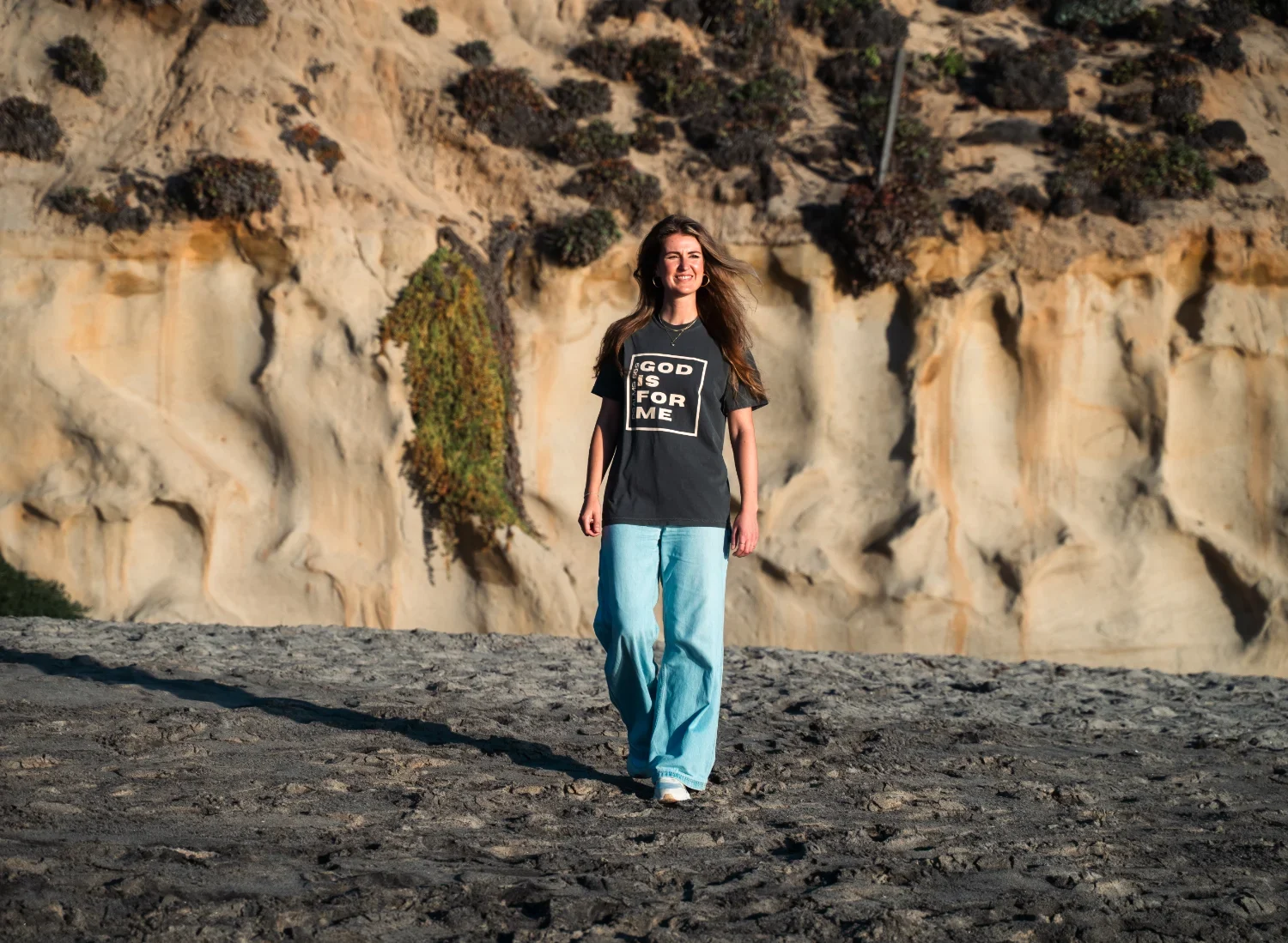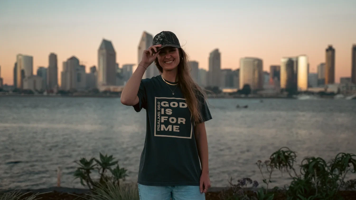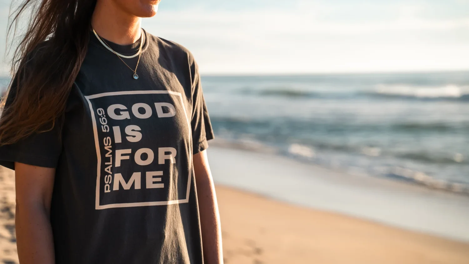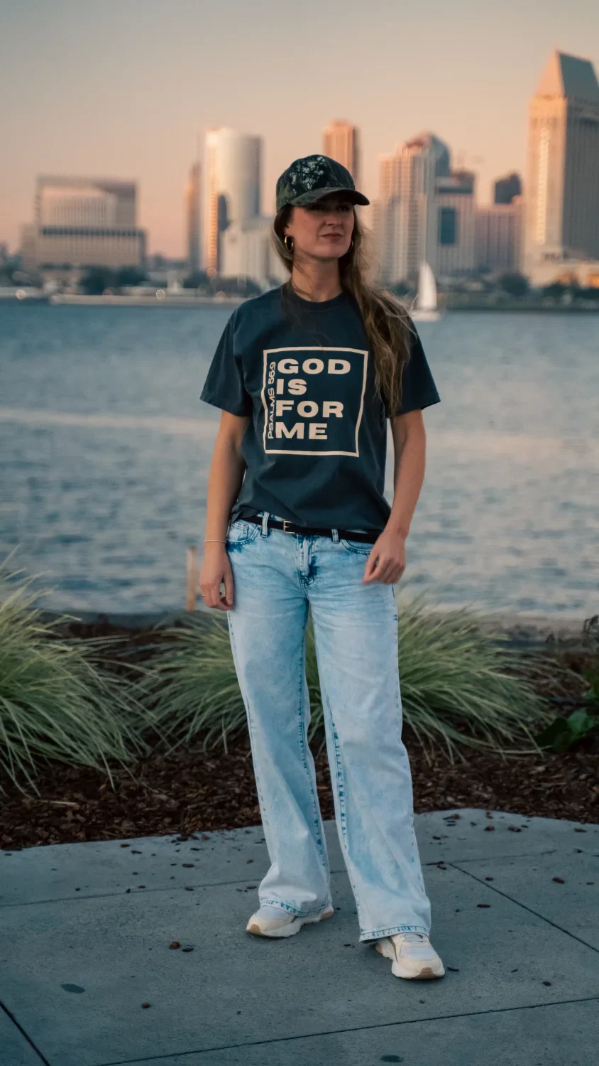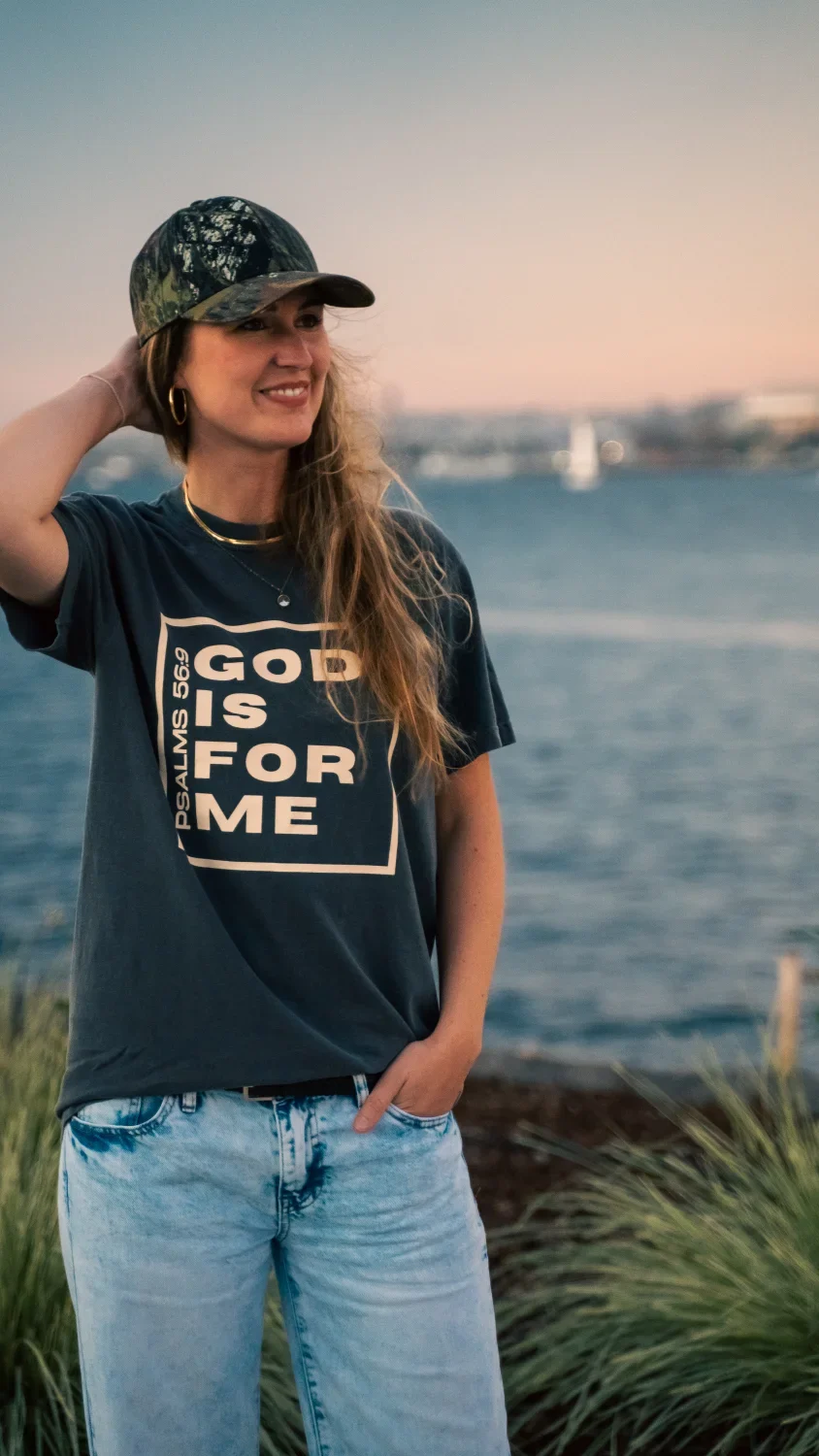 Vintage washed t-shirt in de kleur pepper met de tekst ‘GOD IS FOR ME – Psalm 56:9’.