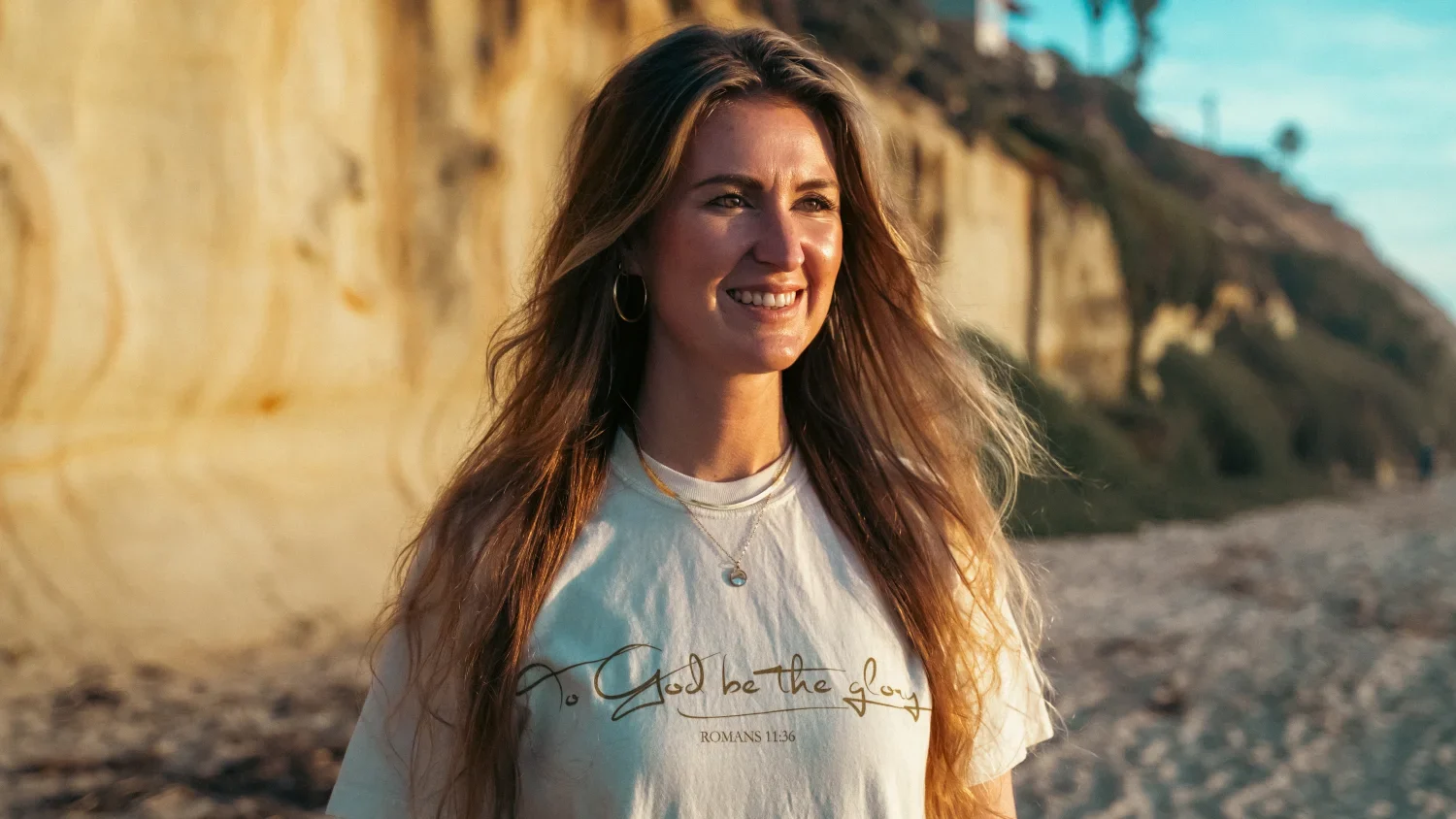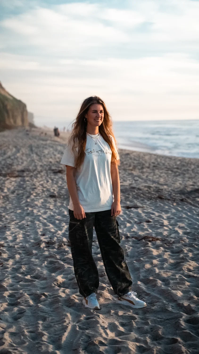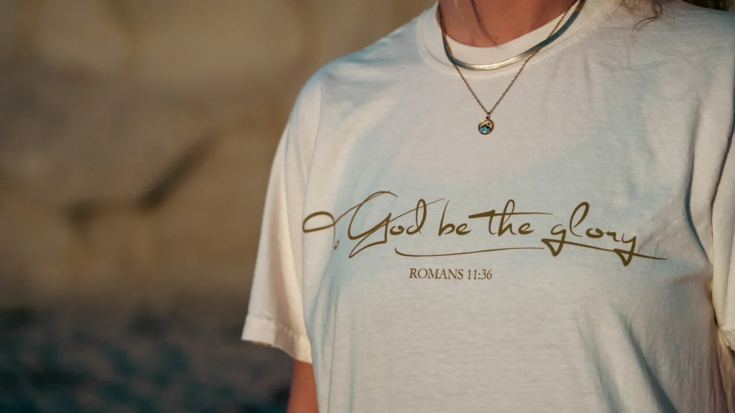Vintage washed t-shirt in de kleur Ivory met de tekst ‘To God be the Glory – Romans 11:36’.